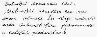 u Stabilitatea scrisului. Aceasta este o calitate ce caracterizeaza scrisul format. Ea se manifesta prin faptul ca dupa ce acesta a devenit o deprindere, forma sa ramane neschimbata. Evident, este vorba de o stabilitate relativa. Asa cum subliniaza literatura de specialitate[4], in evolutia unui scris pot aparea anumite modificari, mai mult ori mai putin semnificative. O astfel de relativitate trebuie inteleasa in sensul ca nu intotdeauna constructiile grafice sunt identice, acestea fiind influentate de diversi factori ce intervin in procesul scrierii. Desi acesti factori determina variatii ale formei grafice, ei nu fac imposibila identificarea persoanei dupa scris . De asemenea, aceste modificari - variatii - nu trebuie confundate cu capacitatea unor persoane de a poseda mai multe specimene de scris , unele atat de diferite incat pot crea dificultati in identificarea scriptorului .