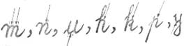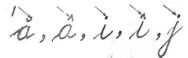 forma sinuoasa - "a" -, crosetata - "a" -, sub forma de virgula - "i" - sau convexa - "i" -, caracteristica pentru scrisurile automatizate, rapide;