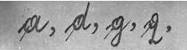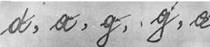 forma spirala - "a" - ori complexa - "a" -, specifica scrisurilor ornamentale, putand si intalnita si la scrisurile deghizate.