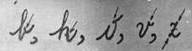 forma liniara - "a", "i" - ori unghi cu latura din dreapta sau stanga mai mare - "a", "i" -, intalnita indeosebi la scrisurile rapide;