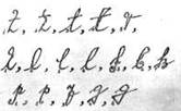 De asemenea, in scrisul unor persoane exista tendinta de micsorare a dimensiunii literelor pe masura ce randul inainteaza spre dreapta - sau invers - ori de marire a dimensiunii acestora. Este ceea ce se numeste scris gladiolat (fig. 176), respectiv scris ingladiolat (fig. 177).