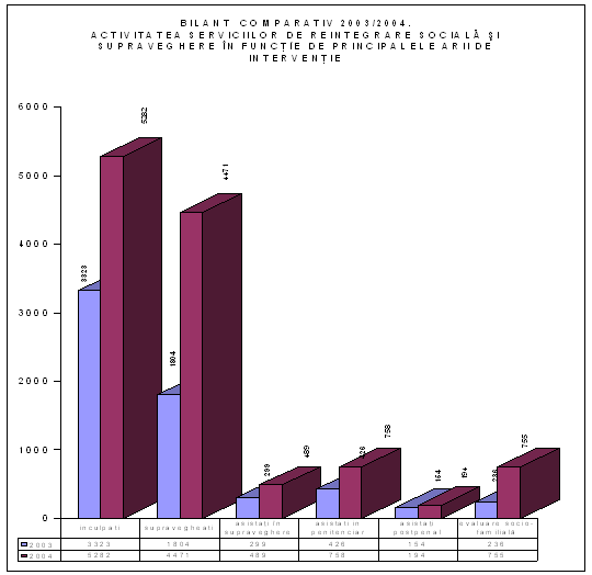 Din statisticile[11] mai sus reliefate rezulta clar faptul ca in ultimii ani-2003, 2004 numarul persoanelor aflate in supravegherea Serviciului de Probatiune a crescut semnificativ de la un an la altul! Acest aspect este deosebit de imbucurator, semn ca lucrurile incep sa functioneze.e drept, cu oarecare stangacie. Poate datorata inceputului!