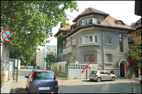 Foto nr. 1 Imobilul situat pe str. Nicolae Dobrescu nr. 16, sector 1, Bucuresti. Sagetile indica usa de acces in imobil si poarta curtii acestuia.