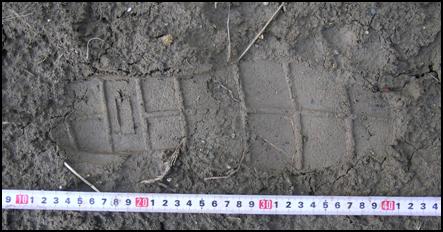 Foto nr. 5 Urma de incaltaminte descoperita in curtea imobilului, langa fereastra de la dormitor.