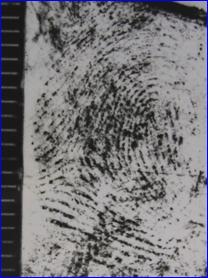 Sageata indica locul de unde s-au ridicat doua urme papilare.