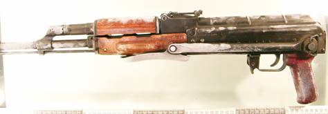 Foto.4-7 Urme relevate cu cianacrilat de pe un pistol mitraliera cu pat rabatabil- de pe capacul cutiei mecansmelor(5), de pe teava (6) si uluc(7).
