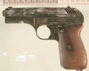 Foto.8-12 Urme relevate cu vapori de cianacrilat de pe doua pistoale, unul de culoare argintie(foto.8-10) si unul de culoare bruna(foto.11-12)