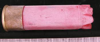 Foto.16-19 Urme relevate cu vapori de cianacrilat de pe doua cartuse de vanatoare cu alice.