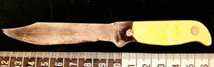 Foto.20-27 Urme relevate cu vapori de cianacrilat de pe un ciocan, un cutit si un pahar .