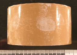 Foto.28-31 Urme relevate cu vapori de cianacrilat de pe o rola cu banda adeziva scotch, precum si de pe o sticla din plastic .