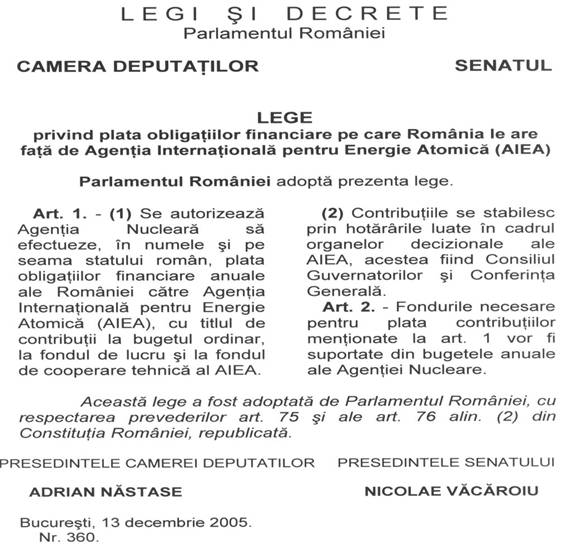 Adoptarea actelor normative este reglementata de Constitutia Romaniei, Legea nr. 24/2000 privind normele de tehnica legislativa pentru elaborarea actelor normative[5] si Hotararea Guvernului nr. 50/2005 pentru aprobarea Regulamentului privind procedurile, la nivelul Guvernului, pentru elaborarea, avizarea si prezentarea proiectelor de acte normative spre adoptare[6].