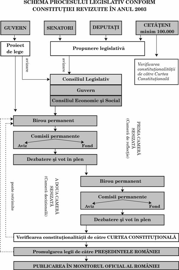 a) Medierea ca faza a procedurii legislative, a fost inlaturata prin Legea de revizuire a Constitutiei nr. 429/2003, aceasta fiind mentinuta, ca o etapa speciala, pentru procedura revizuirii Constitutiei Romaniei, in conditiile art.150 si 152.