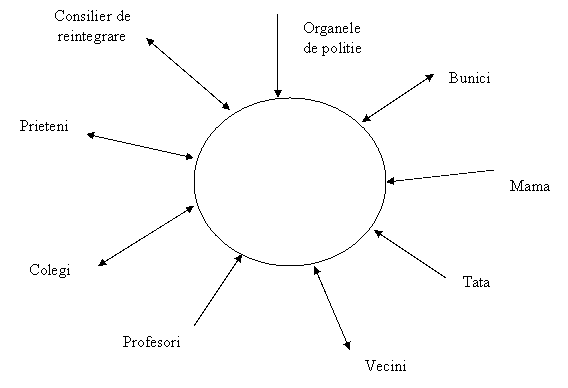 Includerea minorului in programe de asistenta sociala si consiliere avand ca obiective insusirea unui minim de reguli si norme de convetuire, dezvoltarea abilitatii de comunicare si relationare.
