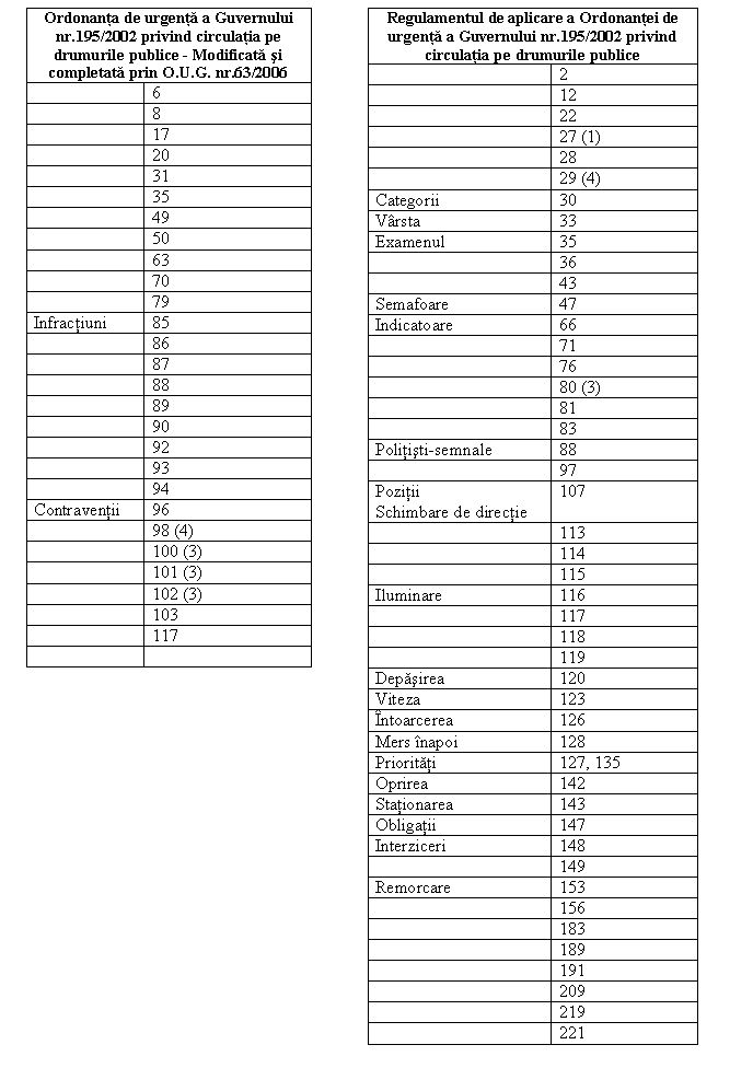 Articolele esentiale din legislatia rutieraCiteste tot ... 4 cuvinte