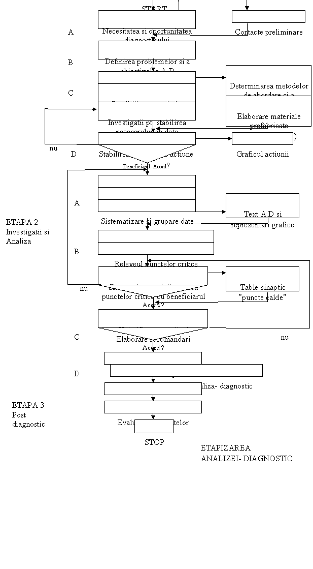 l. Expunerea problematicii si definirea obiectivelor. Se clarifica tema abordata in cursul diagnosticului, spatiul diagnosticat. rezultatele asteptate. In continuare se clarifica referentialul. procesul de realizare a obiectivelor, metodele ce permit atingerea rezultatelor. Este nevoie sa se identifice circuitul informational, populatia studiata, destinatarii rezultatelor.