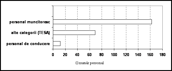 Se constata ca ponderea personalului muncitoresc din total personal este de 66,66% iar personalul TESA cu o pondere de 28,40%. Se apreciaza ca aceste proportii sunt rationale la numarul total de angajati si normala pentru o unitate cu un astfel de profil si specific economic.
