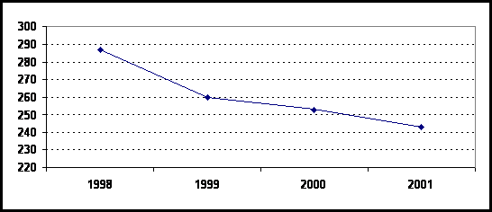 Se observa scaderea continua a numarului mediu de personal in perioada analizata, astfel incat acest numar inregistrat in anul 2001 reprezinta 84,97% din numarul personalului existent in anul 2000.
