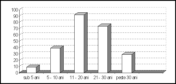 In aceste conditii, analizand vechimea neintrerupta in munca, pe grupe de ani, se constata ponderea majora de 37,86% a categoriei de personal cu vechime cuprinsa intre 11 si 20 ani si ponderi aproape de 30,45% a personalului cu vechime cuprinsa intre 20 si 30 ani.