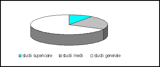 Datele prezentate releva un grad mediu de calificare a intrgului personal datorita ponderii reduse a personalului cu studii superioare si studii generale ce reprezinta o pondere de 30,5%. Personalul de conducere este in totalitate cu studii superioare.