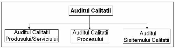 Prin auditurile calitatii pot fi evaluate produse, servicii, procese sau sistemul calitatii unei intreprinderi. In functie de obiectul lor, auditurile calitatii sunt de trei tipuri fig. 1):
