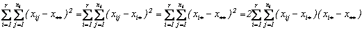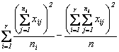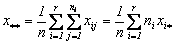 Notand cu xij unde 1£i£r, 1£j£ni, cea de-a j-a valoare din cel de-al i-lea grup, atunci se poate pune in evidenta media aritmetica a celei de-al i-lea grup,