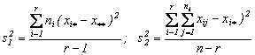 -daca valoarea calculata depaseste valoarea tabelara, atunci nu sunt motive sa se accepte ipoteza H0:mi=m, 1£i£r si deci se va respinge. In caz contrar se accepta ipoteza H0.