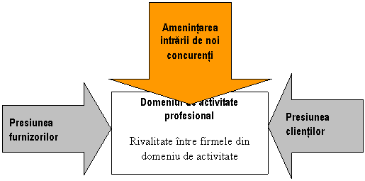 In cadrul domeniului de activitate studiat, o firma este influentata de numarul de firme care au acces la acest domeniul de activitate si de aparitia unor produse de substituire.