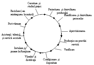 Sistemul calitatii implica toate etapele ciclului vietii unui produs si ale proceselor, incepand cu identificarea nevoilor pietei pana la satisfacerea finala a cerintelor, lucru sugerat de "cercul calitatii", model conceptual al activitatilor interdependente cu incidenta asupra calitatii, in intreaga desfasurare a traiectoriei produsului fig. 6.1.