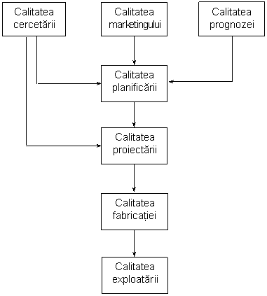 Este deci impropriu spus ca doar sectiile productive realizate calitatea produsului intreprinderii: calitatea se stabileste si in fazele de planificare si proiectare pentru ca un produs nu poate realiza performante decat in masura in care ele au fost prevazute prin proiect si prin indicatorii de planificare.