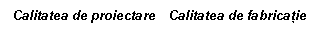 Initial trebuie definita calitatea dorita de client, pe baza necesitatilor exprimate sau implicite ale acestuia. Aceasta trebuie sa se regaseasca in proiect, ca rezultat al unei activitati de conceptie. Dar proiectul poate contine unele abateri, fie datorita limitelor proiectantului in a gasi solutii pentru toate cerintele, fie datorita faptului ca acesta realizeaza proiectul pentru conditiile tehnico-organizatorice disponibile la momentul dat. Aceasta este calitatea de proiectare. In etapa de realizare efectiva a proiectului (fabricatie sau indeplinirea serviciului) rezulta calitatea de fabricatie, care nu va corespunde pe deplin calitatii proiectate datorita nerespectarii intru-totul a tehnologiei.