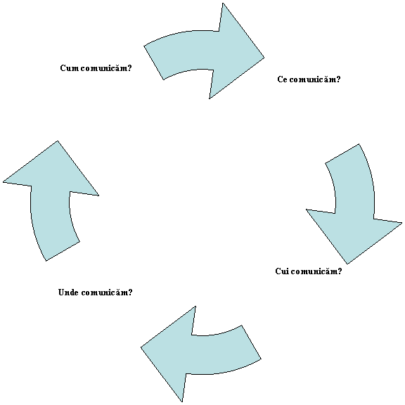 In fond, comunicarea se inscrie in succesiunea intrebarilor: Cine? Ce? Cum? Cui? Unde? Cand?, asociate procesului - vezi Fig. 3.7.