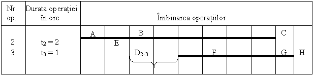 In momentul in care s-a terminat de executat intregul lot la operatia I s-a trecut la operatia a II-a, reprezentandu-se executarea printr-o linie care trece prin opt intervale ( care reprezinta opt ore, adica timpul executarii celor patru produse la operatia a II-a care necesita doua ore pe bucata ).