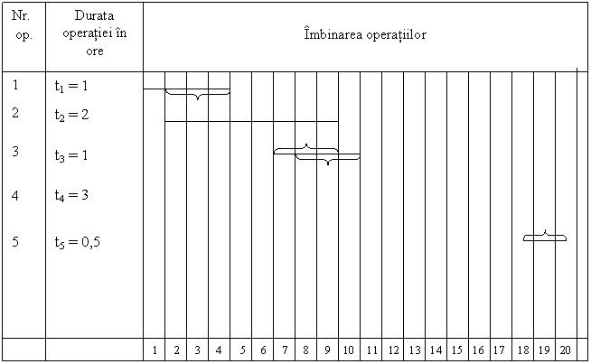 Din analiza duratei operatiilor potrivit regulilor enuntate anterior se considera ca t2 si t4 sunt timpi lungi, iar t3 timp scurt, restul operatiilor nefiind nici lungi si nici scurte, neluandu-se deci in consideratie .
