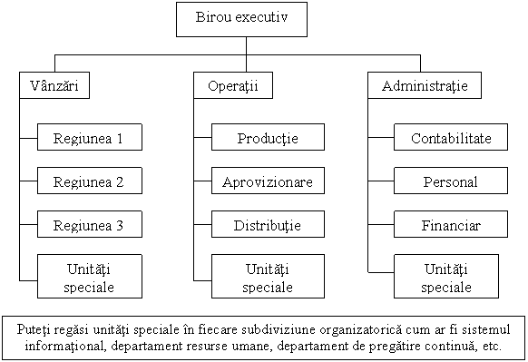 Structura functionala a fost creata special a fi receptiva la nevoile diferitelor departamente ale organizatiei. In structura functionala, subunitatile diferite cu aceeasi specialitate se regasesc in grupuri functionale diferite in cadrul organizatiei, asa cum arata figura 6.2.
