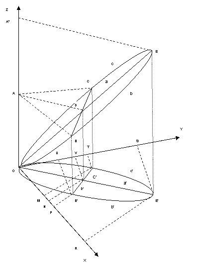 Figura anterioara reprezinta grafic performanta firmei (axa Oz) in functie de doi factori substituibili, eficacitatea (Oy) si eficienta (Ox). Se considera ca firma are trei variante de obtinere a performantei, respectiv cele trei optiuni de pe grafic: a, b, c. Varianta ideala este a, care presupune o combinare in egala masura a eficacitatii si eficientei. Variantele b si c sunt cai de obtinere a performantei prin concentrarea efortului pe unul din cei doi factori determinanti.