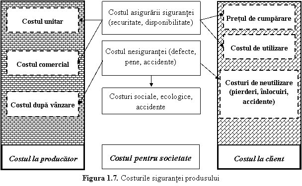 Costuri apar atat din adaptarea masurilor pentru asigurarea sigurantei, cat si din cauza nonsigurantei. Ele se manifesta la toti referentialii (producator, client, societate) si se reflecta in costul fabricatiei, costurile comerciale, costurile pentru service, costurile ecologice, pretul de cumparare, costul utilizarii si costul pierderilor prin neutilizare.