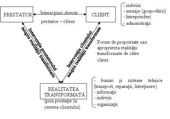 In acelasi context, serviciul mai este definit ca o operatiune ce vizeaza o transformare a starii unei realitati posedata sau utilizata de un consumator, realizata la cererea acestuia printr-un prestator si adesea in relatie cu el, dar neajungand la producerea unui bun susceptibil de a circula in mod economic si independent de realitatea transformata (fig. 1.1).