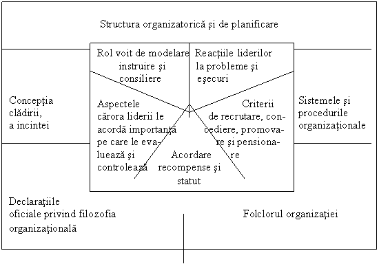 Esenta schimbarii viabile este intelegera culturii organizatiei care se doreste a fi transformata. In cazul in care schimbarea care se intentioneaza este in contradictie cu istoria si traditiile firmei, implementarea ei va fi foarte dificila. Cultura este creata prin intermediul mesajelor pe care liderii, involuntar sau intentionat, le transmit angajatilor referitor la ceea ce cred ei ca este intr-adevar important. Un studiu privind modul in care liderii organizatiilor creeaza si comunica detalii referitor la cultura sau la climatele corporative a stabilit cateva "mecanisme de consolidare" (Schein 1985).