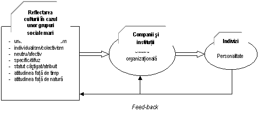 Asadar putem discuta de trei notiuni corespondente, respectiv de cultura nationala, de cultura organizationala si de mentalitatea individului, intre acestea existand o conexiune profunda si o conditionare reciproca, sintetizat grafic, corespondenta celor trei perspective de abordare a culturii se prezinta in figura ce urmeaza: