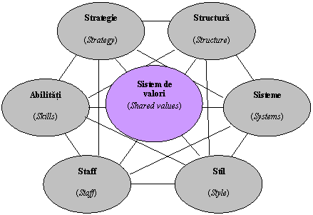Sursa: McKinsey 7-S Framework; preluat dupa Huczynski, A. , Buchanan, D. - Organizational Behaviour - An Introductory Text, Prentice Hall, Harlow, 2001, pag. 631