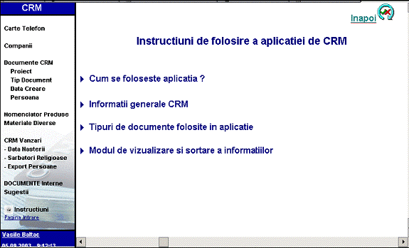 Aplicatia CRM contine si instructiuni de folosire care sunt accesibile on-line (Figura 6). Produsul este securizat si poate fi accesat si de la distanta de persoanele autorizate.