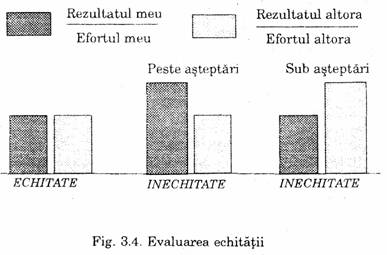 Presupuneti ca sunteti laborant la un spital. Faceti permanent schimb de atitudini si eforturi contra recompenselor tangibile sau intangibile pe care vi le ofera spitalul. Apoi, pentru a determina echitatea castigului, va veti compara, inputurile dv. (ceea ce faceti) si outputurile (ceea ce primiti) cu ceea ce fac si primesc alti oameni in fig. 3.4 este prezentata echitatea ca motivator. Astfel, va comparati talentele dv., indemanarile si eforturile cu ale altor laboranti sau angajati ai spitalului Perceptia dumneavoastra - corecta sau incorecta -afecteaza semnificativ evaluarea inputurilor (eforturilor) si a rezultatelor. Inechitatea apare atunci cand intre input si rezultat intervine un decalaj.