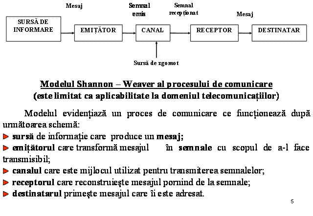 Comunicarea poate fi inteleasa ca transfer de semnificatii intre emitator si receptor prin intermediul unui canal de comunicare.