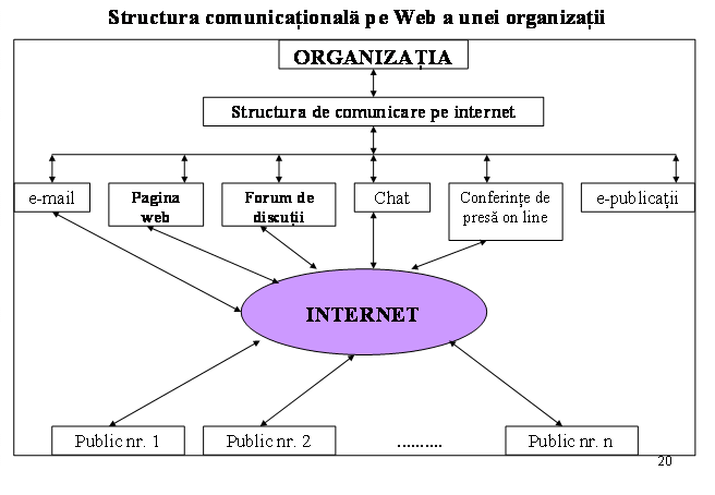* in interiorul organizatiei, procesul de comunicare presupune transmiterea acelor mesaje care, pe de o parte, permit membrilor organizatiei sa-si desfasoare activitatile curente, iar pe de alta parte, asigura stimularea angajatilor si obtinerea adeziunii acestora la obiectivele organizatiei.