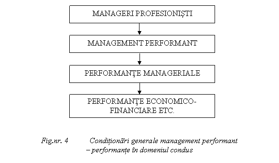 Ceea ce intereseaza in mod deosebit nu numai teoria, ci si practica manageriala din Romania sunt performantele manageriale, fara de care nu este posibila obtinerea de performante economice, financiare s.a.m.d. in domeniile conduse. Conditionarile unanim recunoscute de specialisti in acest perimetru de preocupari stiintifice sunt clare: numai un management performant, exercitat de manageri profesionisti, este capabil de performante manageriale, generatoare de performante economico-financiare, sociale, etc.