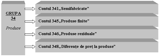 Contabilitatea produselor este organizata cu ajutorul grupei 34 "Produse" care cuprinde urmatoarele conturi, aceasta clasificare este prezentata in figura 3: