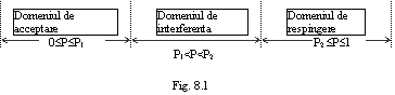 Valorile P1 si P2 impart intervalul de variatie a fractiunii defective P in trei domenii, (fig. 8.1):