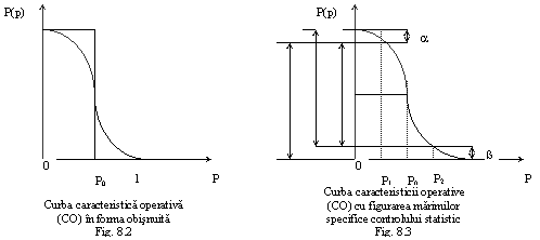 Curba caracteristica (fig. 8.2) ilustreaza faptul ca loturi de calitate acceptabila (P£P0) pot fi totusi respinse, iar loturi necorespunzatoare (P>P0) vor fi totusi acceptate.
