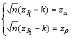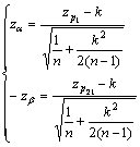 Particularizand expresia de calcul a probabilitatii pentru cazul celor doua riscuri si tinand cont de simetria repartitiei normale, in care ze=z1-e (ze fiind valoarea fixata a variabilei z astfel incat probabilitatea depasirii ei sa fie e), obtinem sistemul: