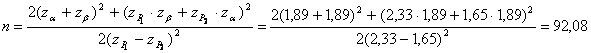 Rezolvare. Se determina valorile zP1=2,33; zP2=1,65; za=zb=1,89, valori preluate din tabelele functiei Laplace.